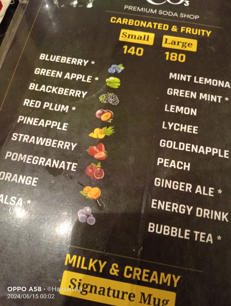 CO3 - The Premium Liquid Shop Menu